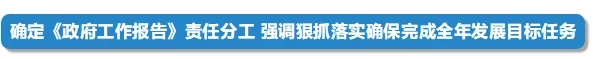 會議將《政府工作報(bào)告》提出的重點(diǎn)任務(wù)逐項(xiàng)分解,明確責(zé)任單位和時限,要求國務(wù)院各部門以對人民高度負(fù)責(zé)的精神,不折不扣抓好落實(shí),奮力完成全年經(jīng)濟(jì)社會發(fā)展主要目標(biāo)任務(wù)。