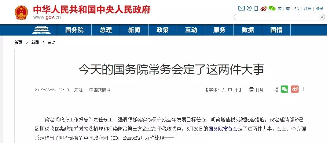 確定《政府工作報(bào)告》責(zé)任分工,強(qiáng)調(diào)狠抓落實(shí)確保完成全年發(fā)展目標(biāo)任務(wù);明確增值稅減稅配套措施,決定延續(xù)部分已到期稅收優(yōu)惠政策并對扶貧捐贈和污染防治第三方企業(yè)給予稅收優(yōu)惠。3月20日的國務(wù)院常務(wù)會定了這兩件大事。會上,李克強(qiáng)總理作出了哪些部署?中國政府網(wǎng)(ID:zhengfu)為你梳理──