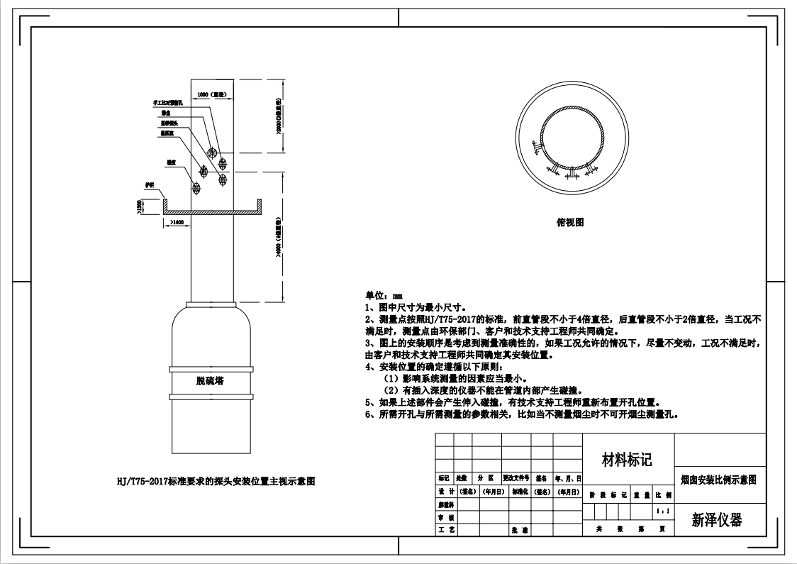 煙氣在線監(jiān)測(cè)設(shè)備之煙囪開(kāi)孔安裝示意圖