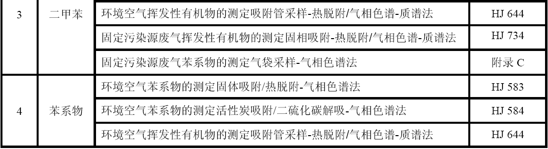 GB 16297 大氣污染物綜合排放標準 GB 24409 汽車涂料中有害物質(zhì)限量 GB/T 15089 機動車輛及掛車分類 GB/T15432 環(huán)境空氣總懸浮顆粒物的測定重量法 GB/T 16157 固定污染源排氣中顆粒物測定與氣態(tài)污染物采樣方法 HJ 583 環(huán)境空氣苯系物的測定固體吸附/熱脫附-氣相色譜法 HJ 584 環(huán)境空氣苯系物的測定活性炭吸附/二硫化碳解吸-氣相色譜法 HJ 644 環(huán)境空氣揮發(fā)性有機物的測定吸附管采樣-熱脫附/氣相色譜-質(zhì)譜法 HJ 732 固定污染源廢氣揮發(fā)性有機物的采樣氣袋法 HJ 734 固定污染源廢氣揮發(fā)性有機物的測定固相吸附-熱脫附/氣相色譜-質(zhì)譜法 HJ/T 38 固定污染源排氣中非甲烷總烴的測定氣相色譜法 HJ/T 55 大氣污染物無組織排放監(jiān)測技術導則 HJ/T 75 固定污染源煙氣排放連續(xù)監(jiān)測技術規(guī)范(試行) HJ/T 194 環(huán)境空氣質(zhì)量手工監(jiān)測技術規(guī)范 HJ/T 293 清潔生產(chǎn)標準汽車制造業(yè)(涂裝) HJ/T 397 固定源廢氣監(jiān)測技術規(guī)范 《建設項目環(huán)境保護設施竣工驗收監(jiān)測技術要求(試行)》(環(huán)發(fā)(2000)38號)