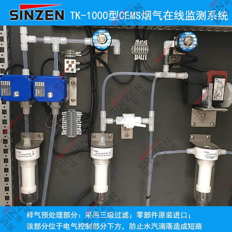 備注:被測氣體進入分析儀表前,需過濾去除粉塵和水蒸氣,依次為:氣態(tài)污染物采樣探頭內(nèi)的陶瓷或不銹鋼過濾器,預處理機柜內(nèi)1~2處過濾器。正常情況下,分析儀采樣流量一般在1~2L/分鐘。