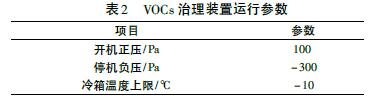 VOCs 治理裝置主要運行參數如表2。