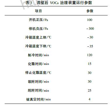 調整后VOCs 治理裝置主要運行參數如表3。