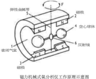 基本原理:其工作原理是基于氧的順磁性,一個小的逆磁性的啞鈴懸掛在非均勻磁場中,當(dāng)被測氣體中有氧氣存在時,氧分子受磁場吸引導(dǎo)致啞鈴旋轉(zhuǎn)、補償力矩的張力要將啞鈴維持在原來的位置,張力的大小與樣氣中的氧分壓成正比。被測氣體氧含量不同,旋轉(zhuǎn)力矩和復(fù)位力矩的平衡位置就不同,也就是啞鈴的偏轉(zhuǎn)角度就不同,這樣,啞鈴偏轉(zhuǎn)角度的大小,就反映了被測氣體中氧含量的多少。對啞鈴球偏轉(zhuǎn)角度的測量,大多是采用光電系統(tǒng)來完成的。
