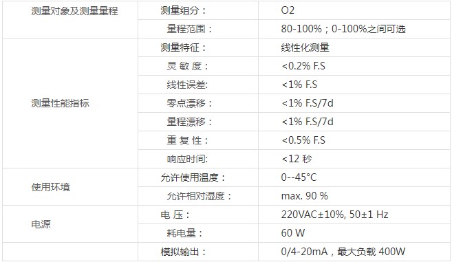 本系統(tǒng)中的分析儀表選型、配置及實現(xiàn)方案,保證嚴(yán)格遵照醫(yī)用氧的指標(biāo)要求,所提供的分析儀表完全滿足儀表數(shù)據(jù)表提出的技術(shù)規(guī)格,并保證儀器的完整性及設(shè)計合理性。